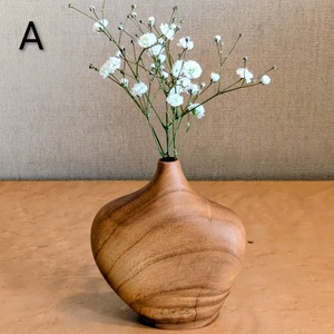 両手に収まるアシンメトリーな形をした、無垢の木を削って作られた一輪挿し。